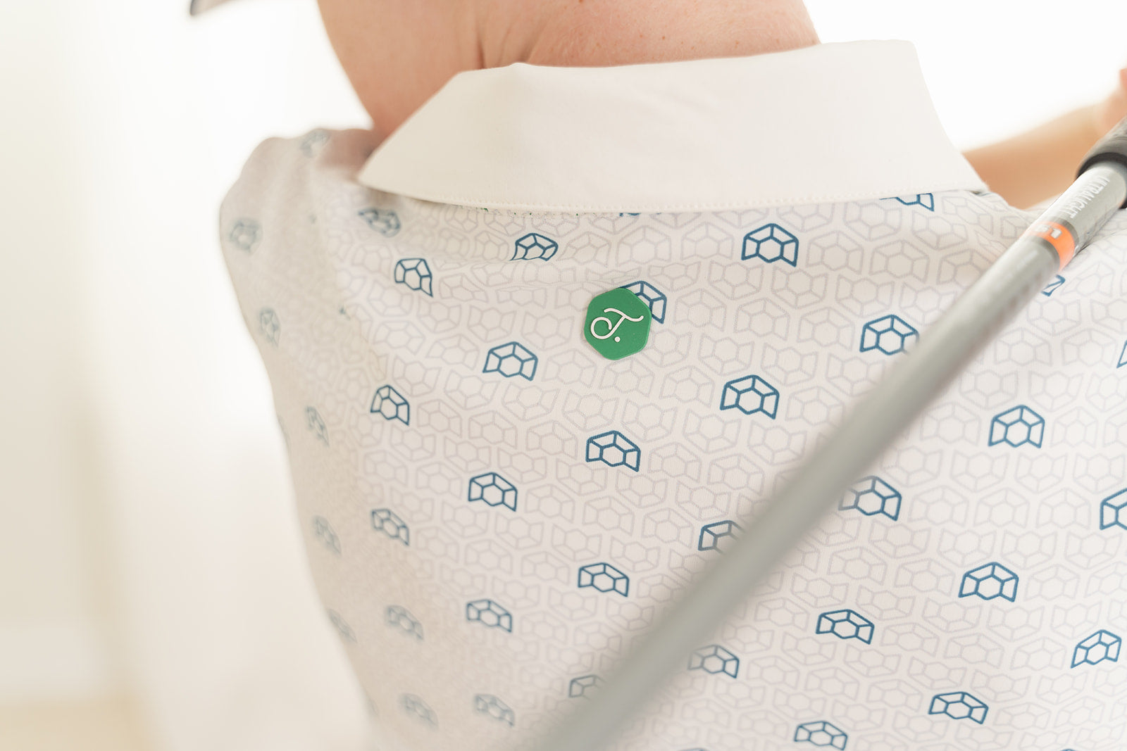 - Rubberized logo at back neck