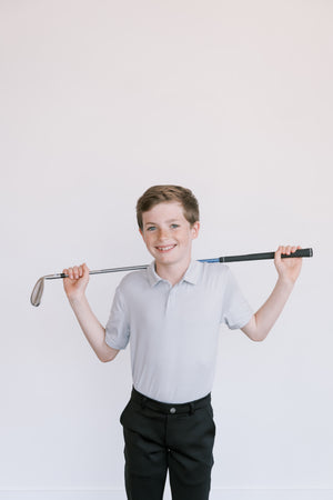 Apparel built for days that start with a tee time. Our pants and polos look clean and pulled together, but still feel like play clothes. With soft, stretchy fabric and easy pull-on waistbands, getting dressed is simple, and staying comfortable is even easier. Whether it’s a junior round or just tagging along with Dad, they’ll look the part and move like they always do.